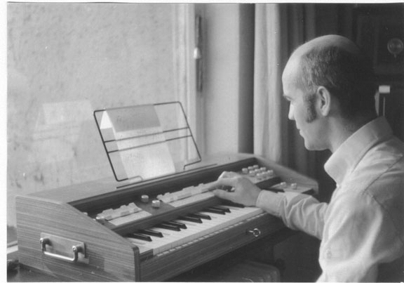 Heinz Bohlen working on a synthesizer in ’73. Note the odd pattern of black keys