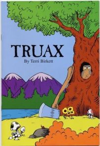Last Sunday the Boston Globe ran a piece on the rise of right-wing books for children, “Bedtime for Little Patriots” by Tom Scocca, an author and blogger for Slate. His funniest case is shown to the right, where the National Oak Flooring Manufacturing Association tries to convince kids that logging off forests isn’t so bad, in spite of what Dr Seuss’ Lorax says. His other main example is a series of Coulter-esque humor books by Katharine DeBrecht with titles like “Help Mom! There Are Liberals Under My Bed!” These feature bits like the Ted Kennedy Car Wash, which may amuse conservative parents who still care about Chappaquidick, but is going to baffle six-year-olds. Bits like that are standard in right-wing lit but hardly prove that conservatives are aiming to win back children seduced by the New Deal values of Dr. Seuss.