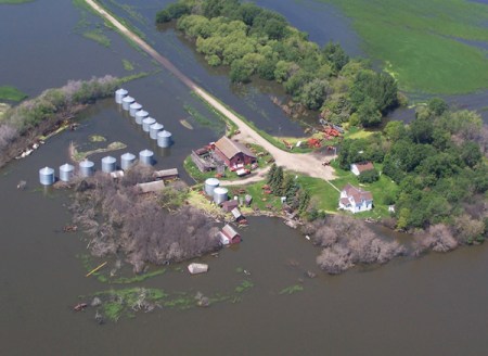 You can’t get to it any more. Hundreds of square miles have been flooded around you. Nearby villages have been lost, and the town of Devil’s Lake (pop 7000) has only been saved by a levee built by the Army Corps of Engineers. The roads around the lake have been washed out, and the rail lines are about to go too.