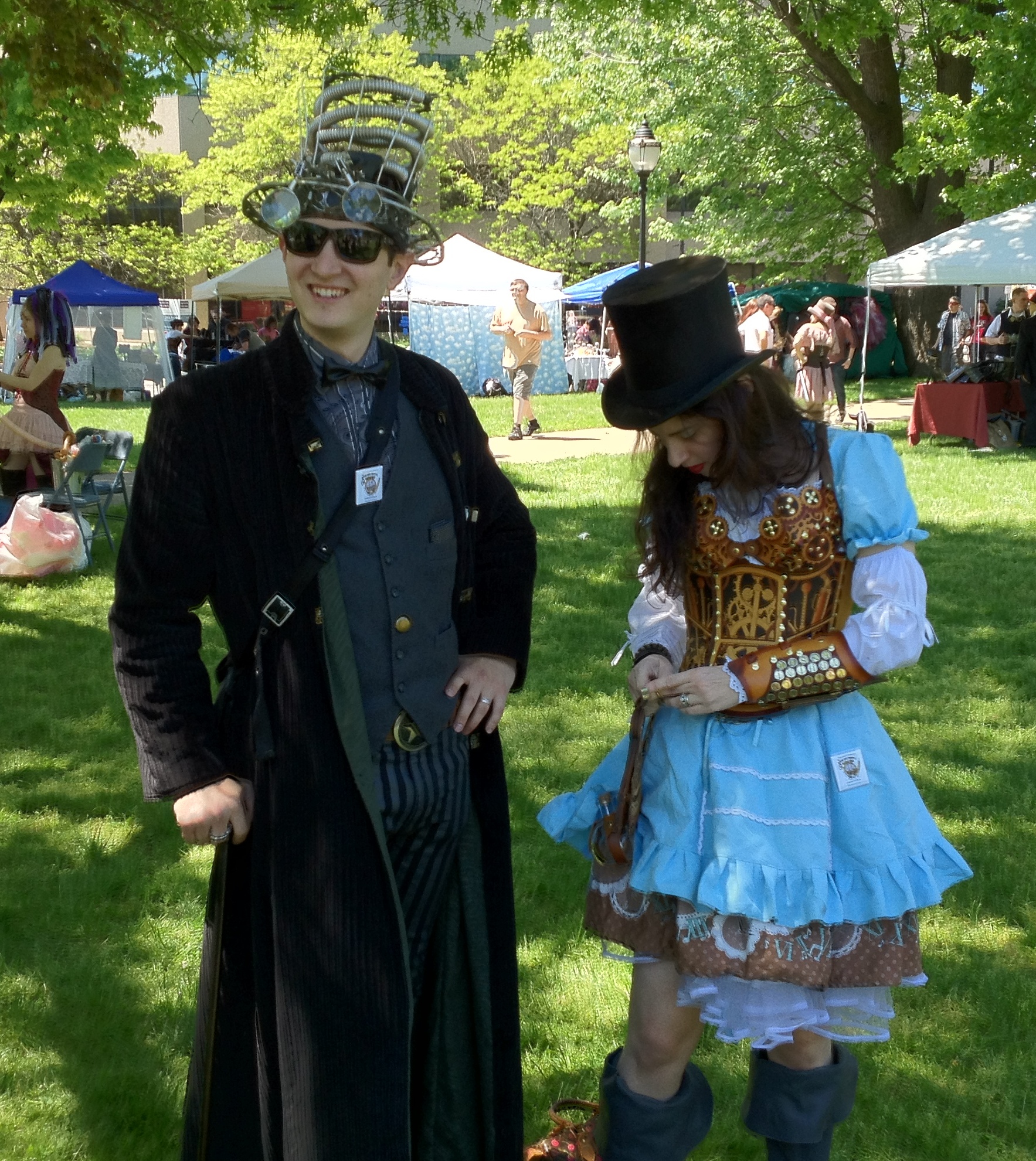 I had no idea how big steampunk has gotten. There was a gathering of them in Waltham this last weekend at the Watch City Festival, and 17,000 people showed up. I took the kids there on a beautiful Saturday afternoon, and there were people in costume everywhere: