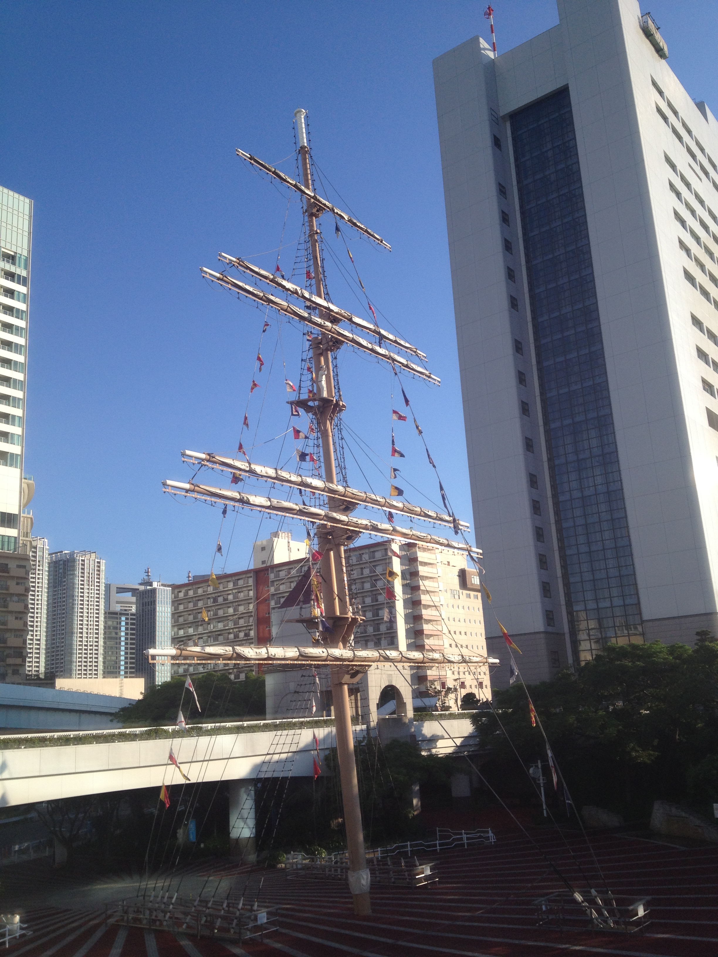 It’s right next to the Takeshiba Passenger Terminal, which takes people on sea trips to the Tokyo Islands, about 100 km out in the Pacific. But what’s this in the middle of the plaza outside the terminal?
