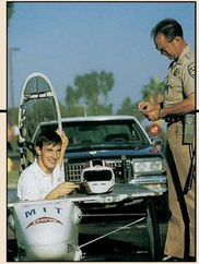 and the Solectria 5, 5B and MIT 5X. He took them to solar races all over the world. Here he is getting pulled over by a state trooper for breaking the speed limit: