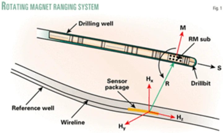 The key problem here is getting the wells to connect up when they’re kilometers underground. This is called Wellbore Intersection, and is apparently a standard service these days. They use something called Magnetic Ranging Technology, and one scheme for that looks like this: