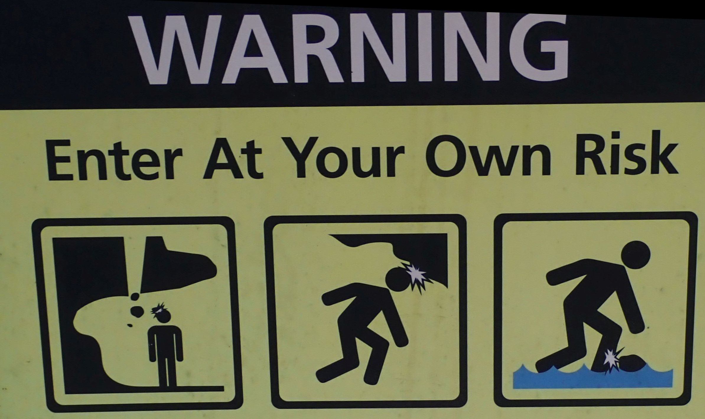 The family and I are vacationing in Hawaii, and it really is as spectacular as everyone says. There are extraordinary things to see everywhere, but they’re very aware of how bumbling tourists can be. As one of our tour guides said “I used to believe that there was no such thing as a stupid question until people started asking me things like ‘Does the sea go all the way around the island?’ ‘Yes, ma’am it does.’ ‘Is that the same moon we see in California?’ ‘Yes sir, it is.'” So everywhere you go, they’re careful to warn you about what might happen. E.g. before entering a lava tube you see: