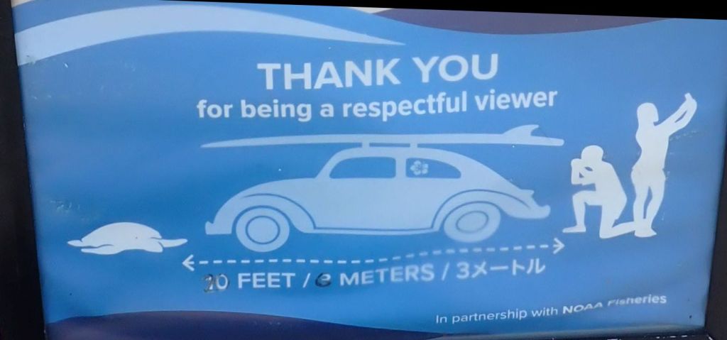 Stay 10 feet away from sea turtles. How big is 10 feet actually? The size of a VW Beetle and its constant companion, a surfboard. That’s a pretty good scale!